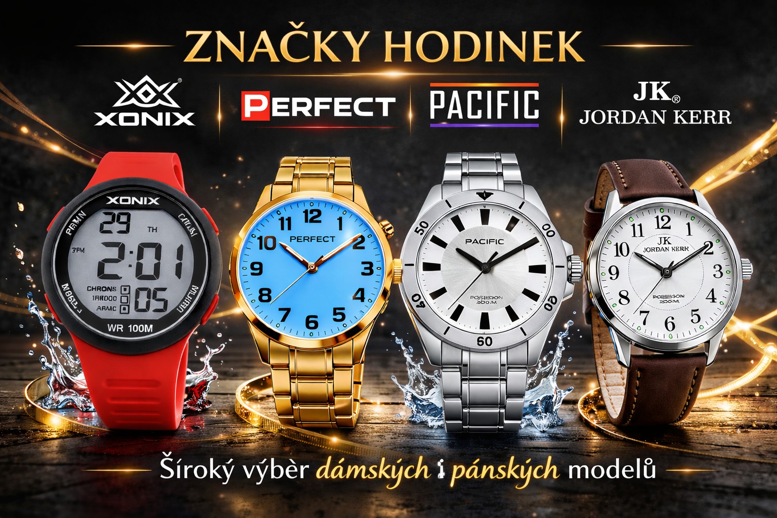 V našem sortimentu naleznete široký výběr hodinek (JORDAN KERR, PACIFIC, PERFECT, XONIX), budíků, hodin, řemínků (TOP, HORIDO, SK, PACIFIC, CHERMOND, JORDAN KERR, silikonové a další), kovových náramků (nerez, pružné, milánské, titanové aj.) a také náhradních dílů a příslušenství – strojky, baterie, sklíčka, ručičky, spony, koncovky či krabičky.