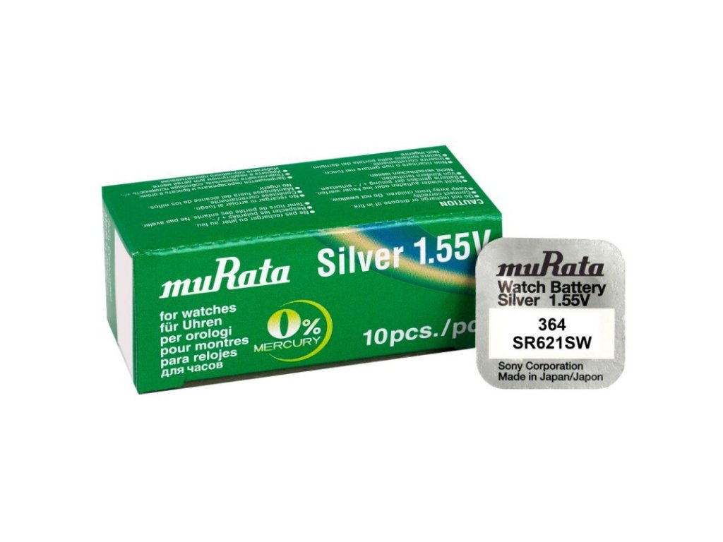 Stříbrozinková hodinková baterie 364 muRata/SONY. Napětí 1.55V.